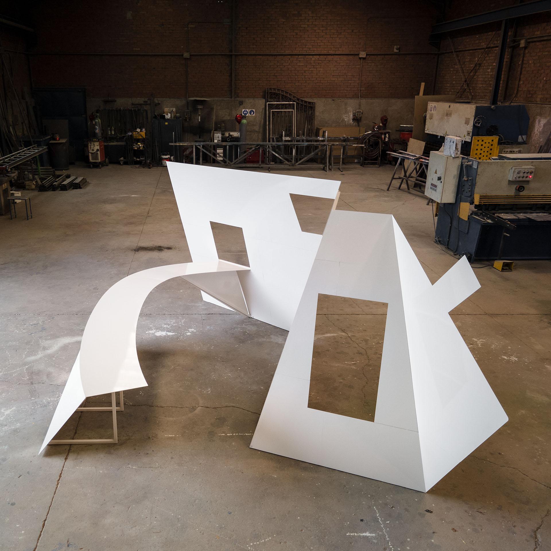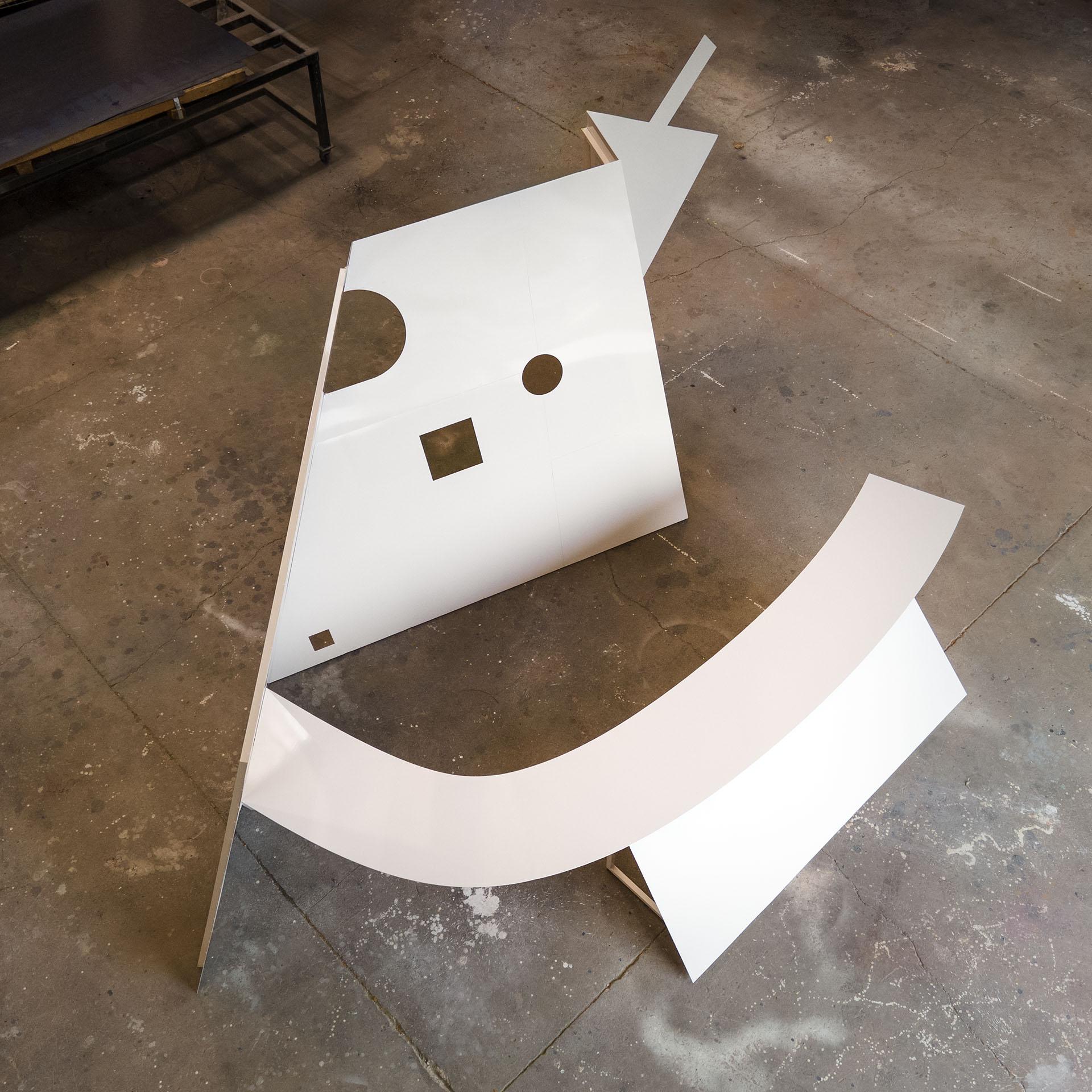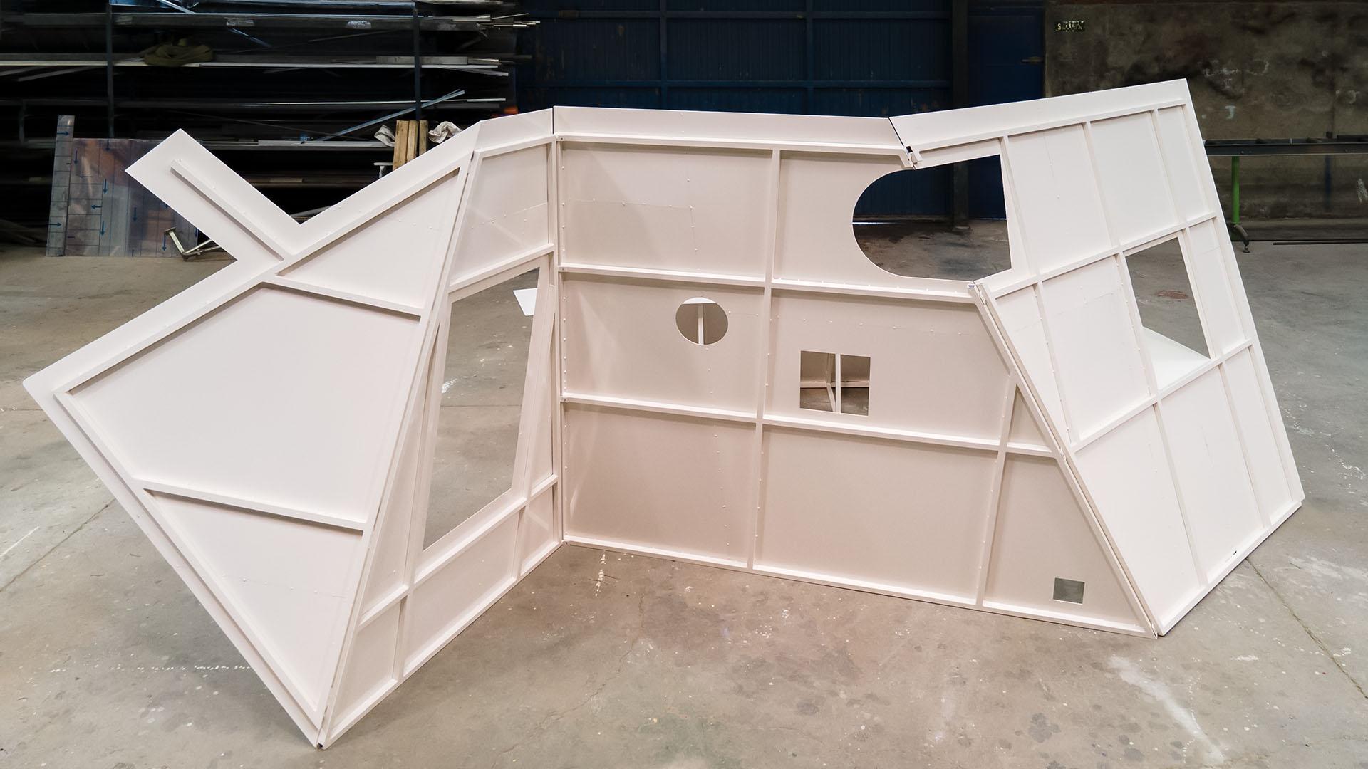 Estructuralmente, la casa es un plano autoportante creado con un entramado de perfiles cuadrados de 25x25mm de acero lacado en blanco roto sobre el que apoya, volando ligeramente por todo el entorno, una chapa de 3mm de grosor. Esta situación entre la estructura y la chapa doblada, confiere a la casa una apariencia cercana al papel. Y cuando se la rodea, o se sobrevuela -para disfrute de los pájaros- estas superficies se convierten en finas líneas abstractas de color blanco.