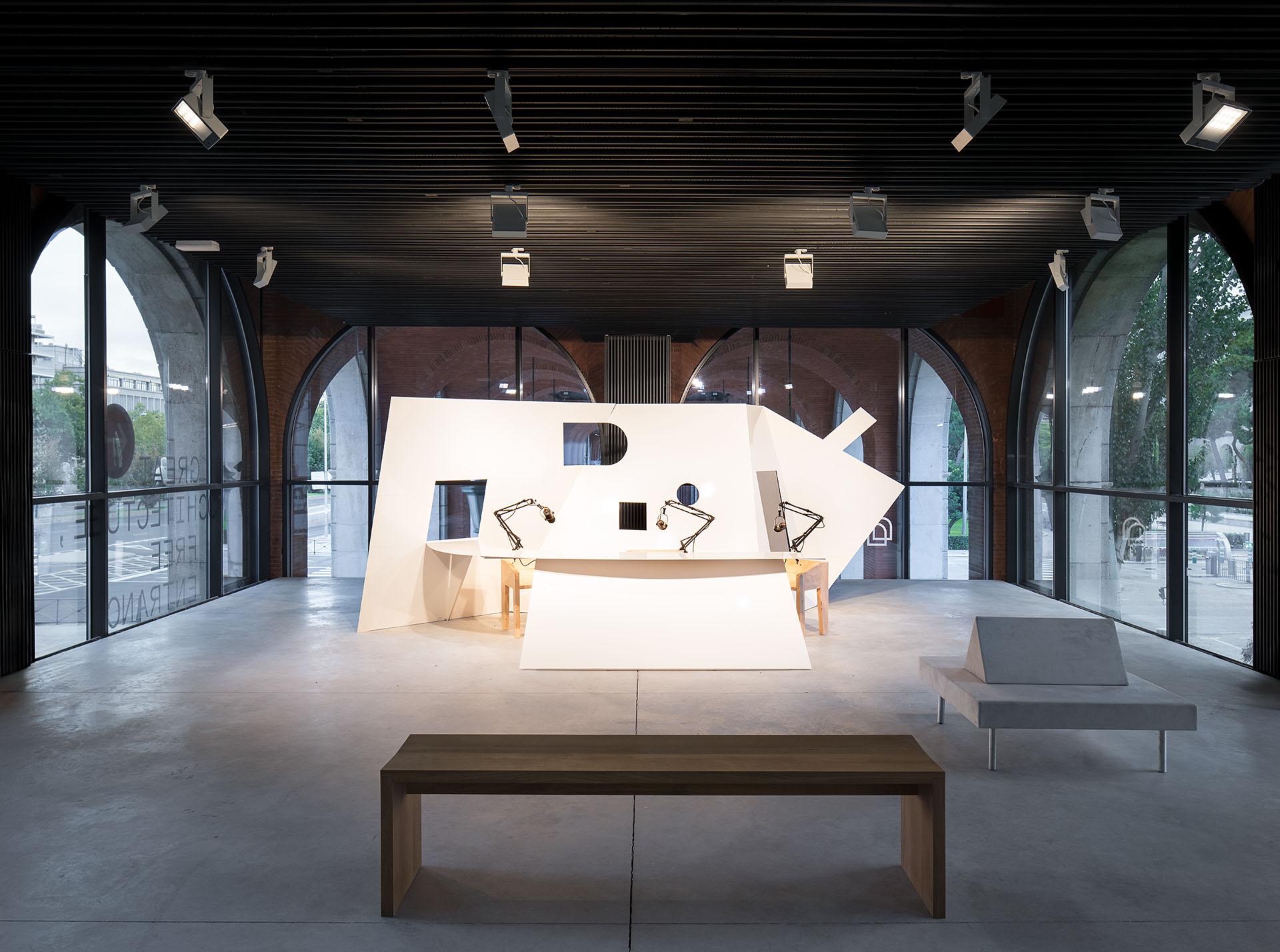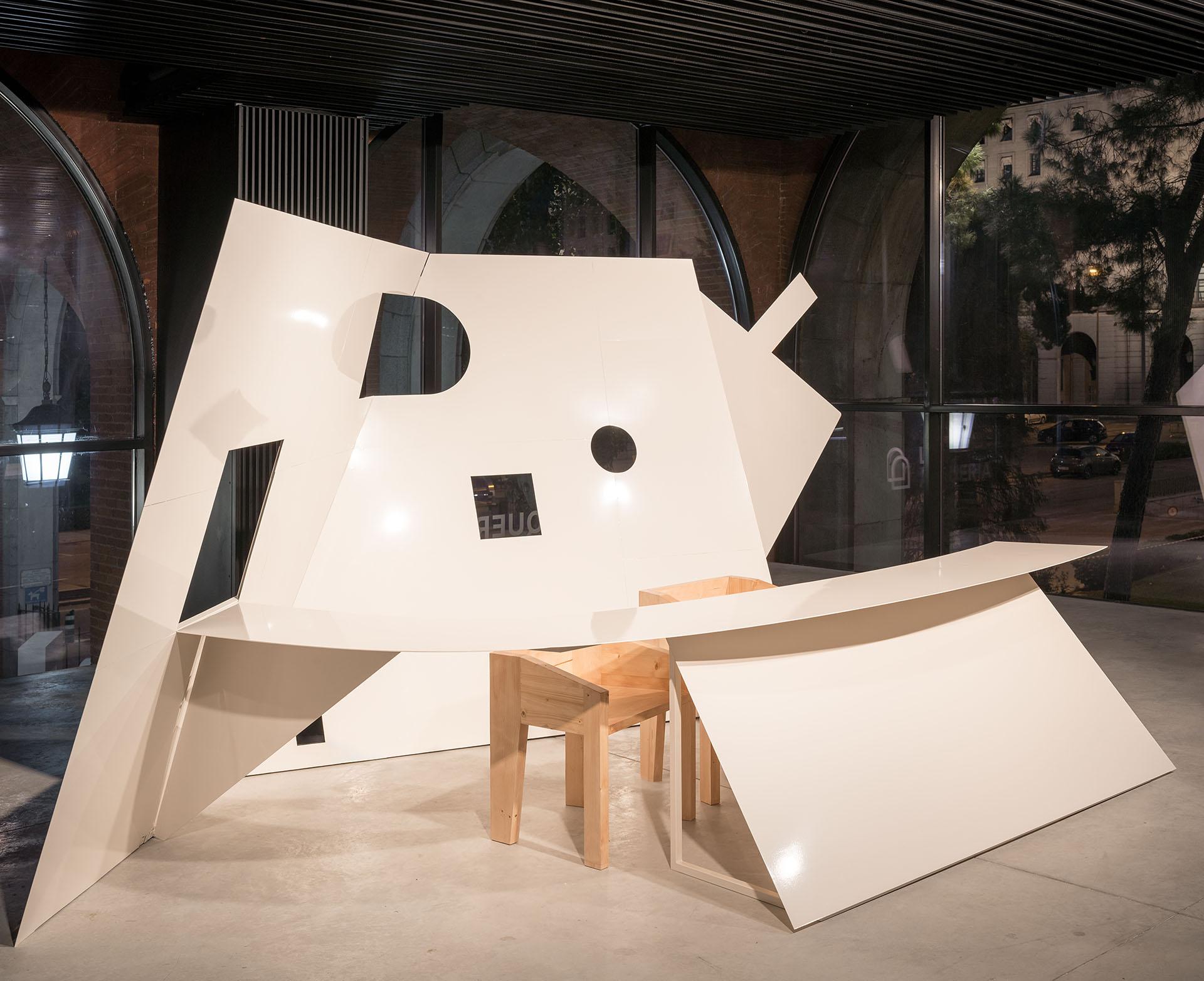 Esta casa es un artefacto. Tumbada, distorsionada y desplegada, parece venir de aquella forma arquetípica que ha tenido siempre la cabaña. Aquí, la casa tiene una determinada función: alojar durante varios meses el proyecto de un videopodcast. Un cometido que se resuelve por medio de un plano quebrado, la casa, que a través de sus ventanas deja ver la ciudad tras de sí, Madrid. Casa y ciudad, dos escalas a las que se enfrenta la arquitectura, tienen aquí una modesta relación.